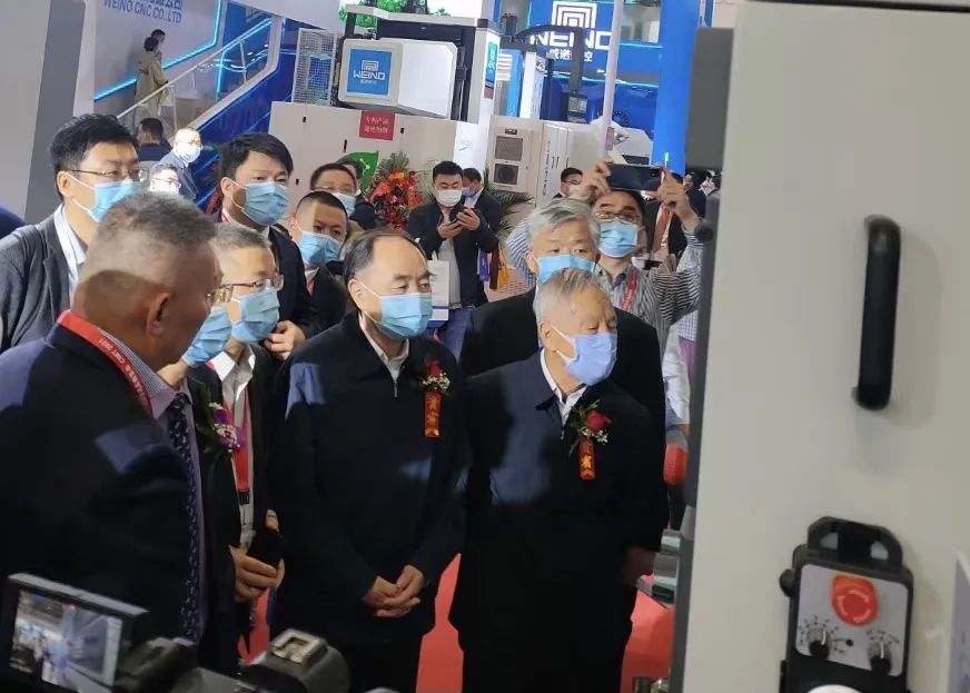 上午10時,中國機床工具工業協會執行副理事長兼秘書長王黎明、中國機床工具工業協會監事長王旭陪同原教育部部長、中國工程院院長周濟,原機械工業部副部長、國務院派駐國有重點大型企業監事會原主席賈成炳等一行來到杭機展臺前,杭機股份董事長孫益民、總經理董凱夫向各位貴賓匯報了杭機在解決航發葉片加工等卡脖子問題上取得的成果,目前這一成果已批量提供給航發用戶。周濟院長長期致力于機械設計、數控技術與智能制造的教學和研究工作,作為行業的專家,他耐心詢問杭機的發展現狀和產品結構。賈副部長饒有興致地走近五軸數控強力成型磨床,近距離觀察機床內部結構,孫益民董事長和董凱夫總經理向幾位領導介紹了兩臺展品的適用范圍和產品性能,以及杭機目前參與的國家04專項的進展情況,幾位貴賓勉勵杭機要投入更多精力到產品研發上,承擔起為國內航空航天、高精度數控機床功能部件及能源裝備中的關鍵零部件的高精、高效加工的企業責任。